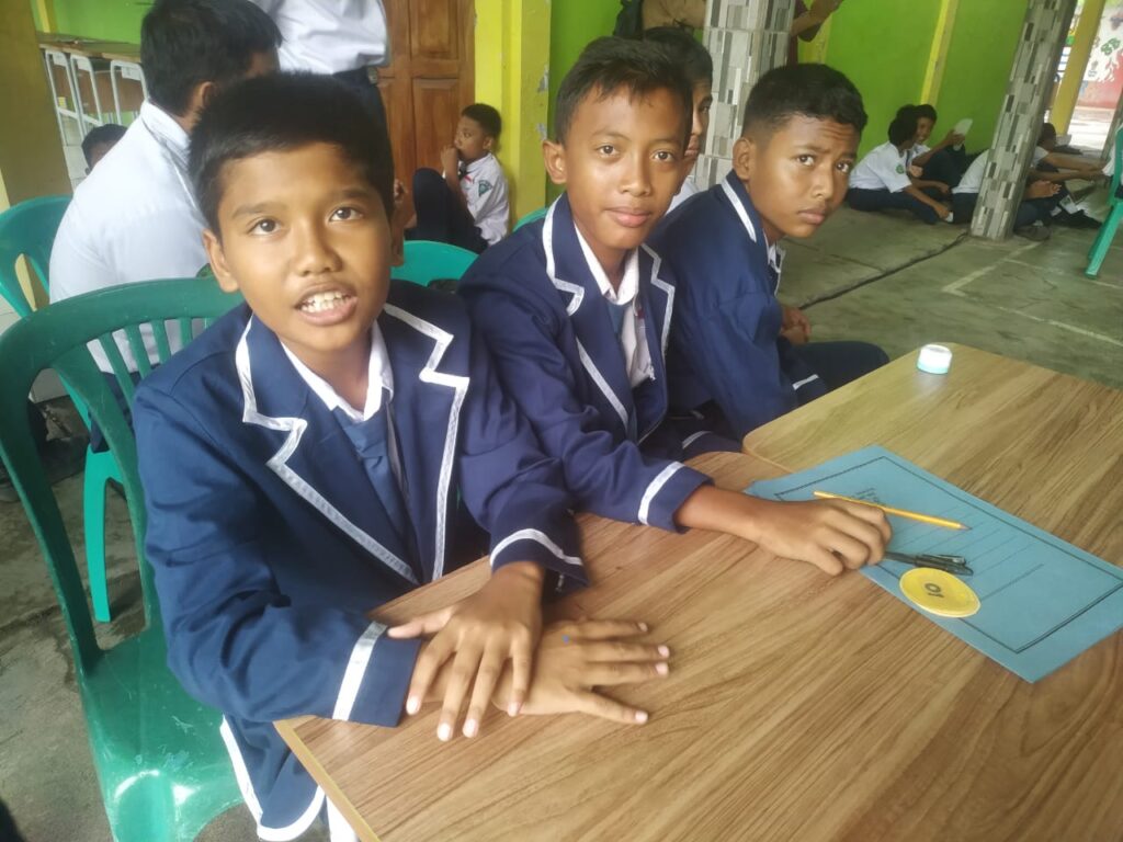 “Untuk peserta harus daftar sebelum jam delapan. Kalau dafatr setelah jam 8 sudah tidak bisa daftar lagi karena sudah ditutup. tadi sudah dibriefing Bu Febri sana Bu Ain,” kata Ira Mukti dar kelas VIII E yang bertugas mendaftar peserta lomba Melukis Bercerita.